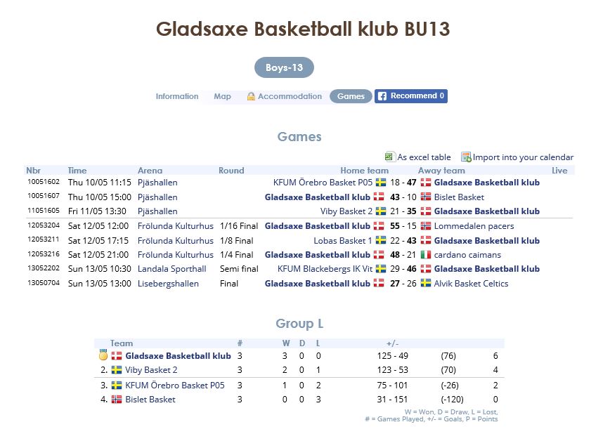 Quarter Final Gladsaxe Basketball klub 48 - 21 Cardano Caimans395 imagesSemi final KFUM Blackebergs IK Vit 29 - 46 Gladsaxe Basketball klub638 imagesFinal Gladsaxe Basketball klub 27 - 26 Alvik Basket Celtics498 images11 videosFinale Sejers Ceremoni459 images2 videosStunder Fra Turen35 images 2018 Sep Amager Cup2018 Maj U14 Hørsholm - GBBK (45-110)
